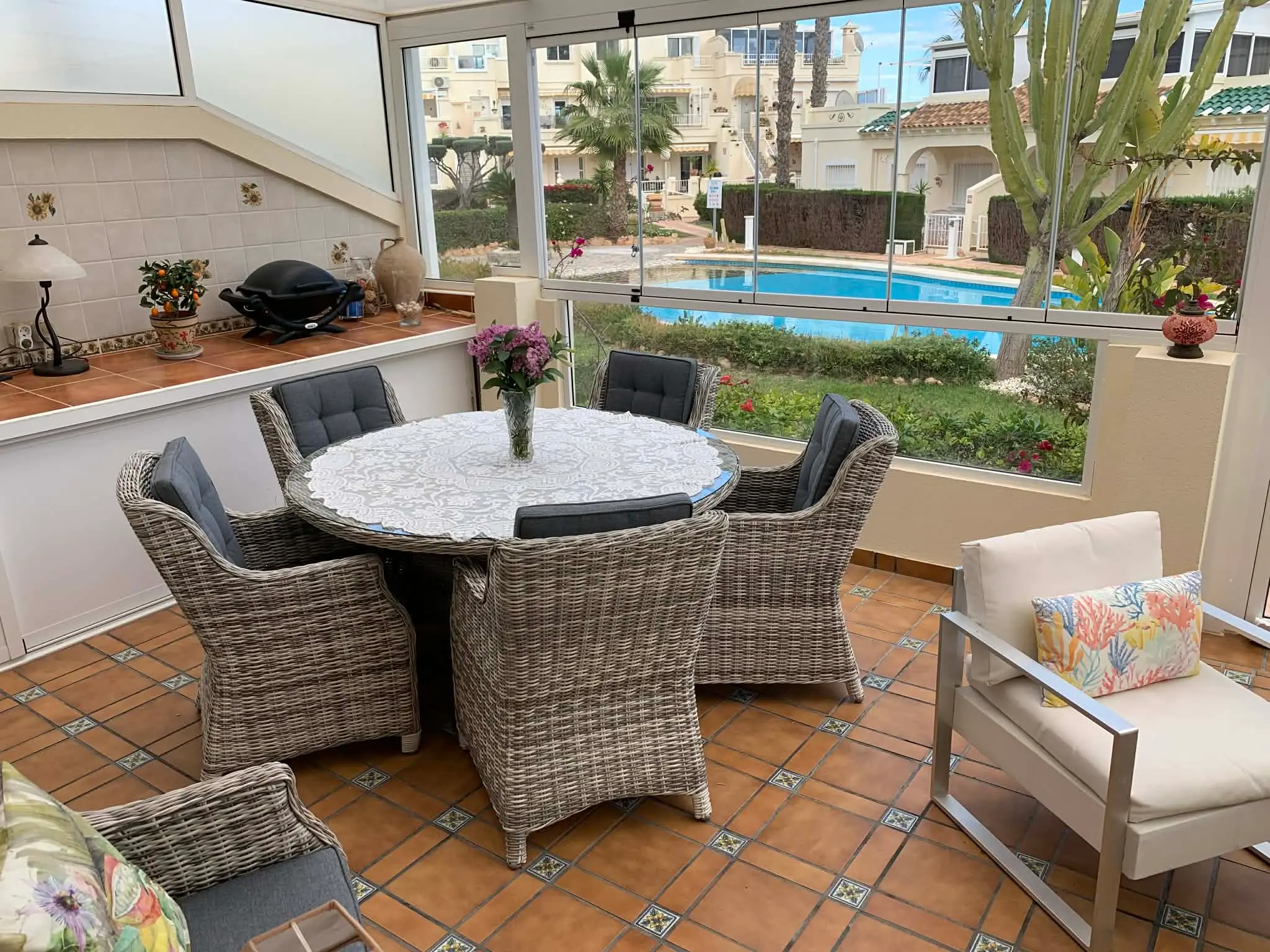 La Zenia Shopping Centre is just 10 minutes from the house, and nearby you can visit the local street market held every Saturday. The best beaches in the area are only 15 minutes away. Restaurants and bars are right next door, and a supermarket is just 10 minutes away.